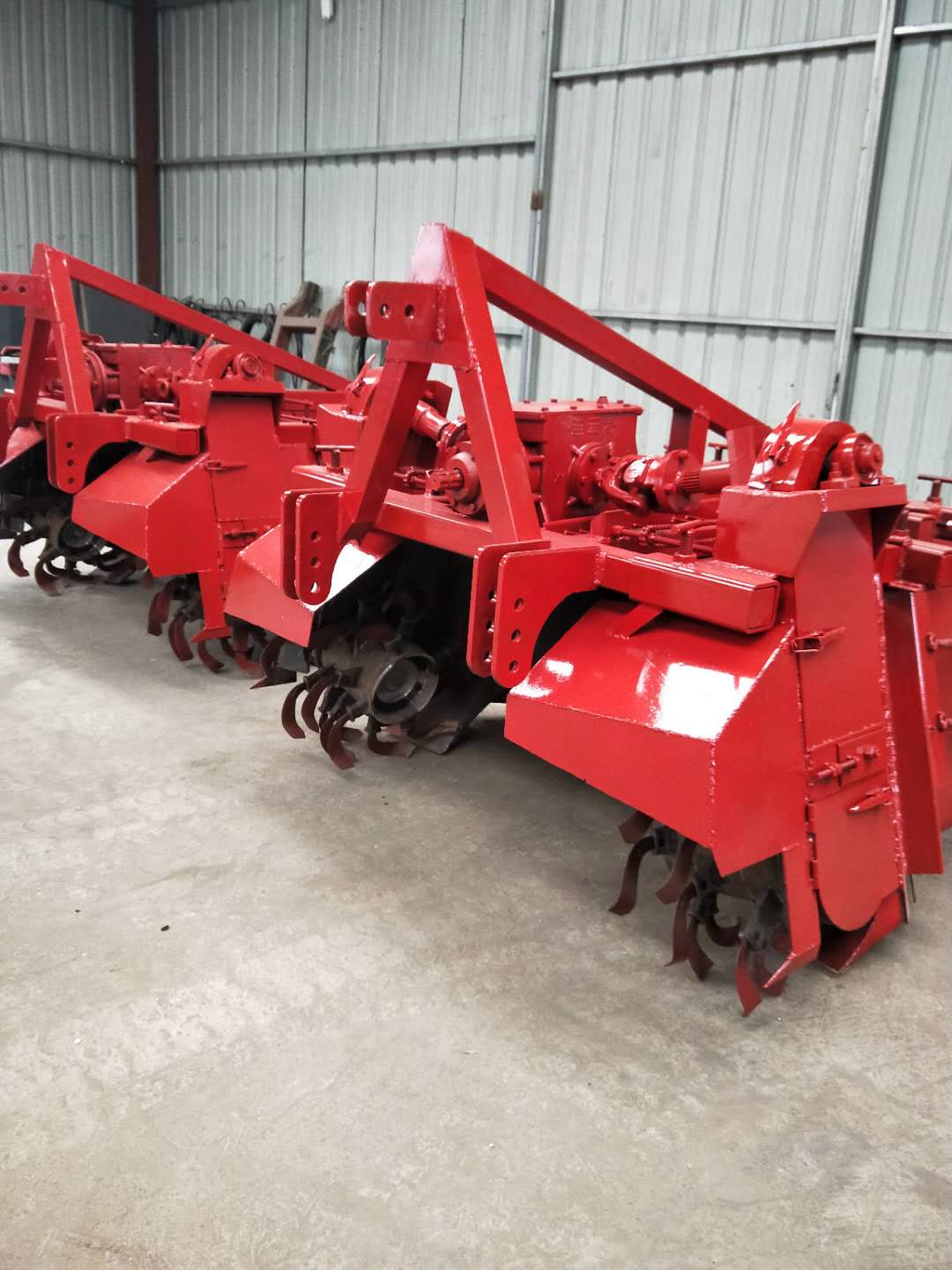 大型旋耕起壟機是為33.1-66.2千瓦(45-90馬力級)拖拉機配套的中間全齒輪傳動整地機。其結構特點是整機剛性好,左右對稱,受力平衡,工作可靠。耕作后壟形成型好,地表平整,覆蓋嚴密,工效較高,油耗較低,對土壤濕度適應范圍較大,一般拖拉機能下田即可進行耕作。